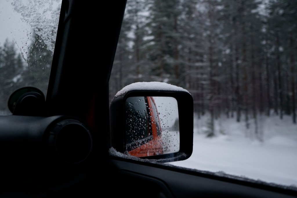 Euch erwartet einen Schneelandschaft die für all das entschädigte. Der Wrangler stach mit seiner Farbe deutlich aus der weißen Pracht. Jeder kennt die Bilder von Jeeps in der Wüste Moab, Bikini Top und ohne Türen. Nun ja das war bei uns nicht angesagt. Wir hatten zeitweise -27C da waren wir dankbar für ein Hardtop und die Heizung war auf Anschlag gedreht. Dank des unglaublich tollen Allrad hat er uns „fast“ immer ohne Rutschen von A nach B gebracht.